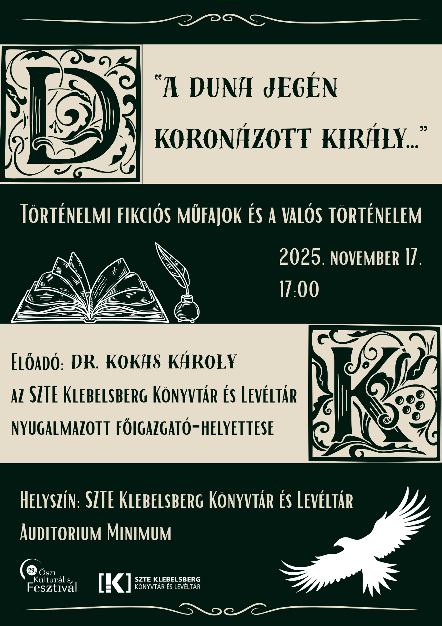Előadó: Dr. Kokas Károly, az SZTE Klebelsberg Könyvtár és Levéltár nyugalmazott főigazgató-helyettese