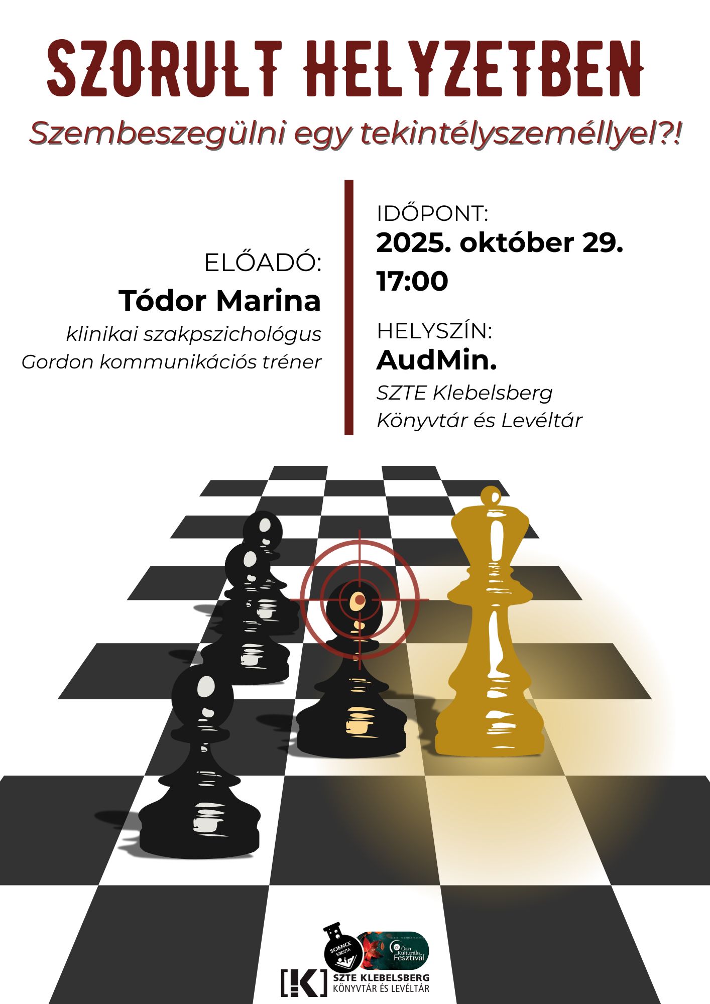 Tódor Marina klinikai és pedagógiai szakpszichológus, Gordon kommunikációs tréner ezekre a kérdésekre igyekszik választ adni előadásában, melynek alapja saját megélése lesz egy szorult helyzetben.